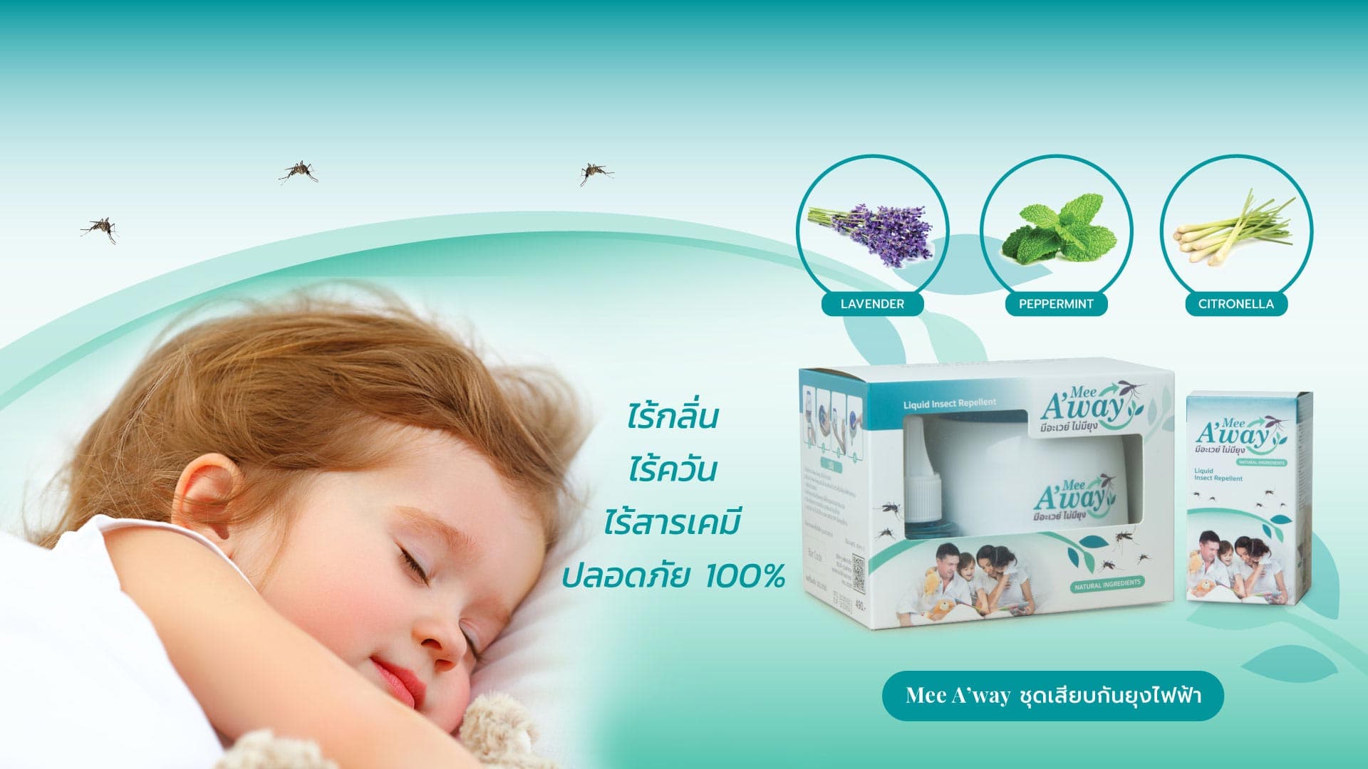 น้ำยาไล่ยุง Mee A’way มีส่วนผสมจากธรรมชาติ 100% ไม่มีสารเคมี จึงมั่นใจได้ว่าปลอดภัย
